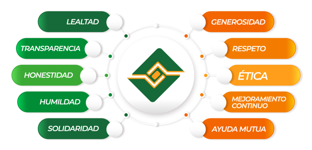 Somos una institución financiera que aporta al crecimiento de los manabitas bajos los principios del cooperativismo, reflejando de esta manera nuestros valores cooperativos: